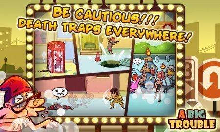 A Big Trouble -- отменная игрушка на системе андроид про уличного вора. Твоя цель украсть у проходящего человека что-либо и потом уносить ноги со всех сил. Игрушка исполнена в формате ранера, но с собственными неимоверными моментами. В проекте шикарная прорисовка героев, широкий перечень преград и парочка локаций. Игрушка сто процентов тебя заинтересует. Проект не владеет русификацией.