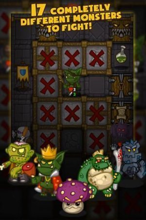 Dungelot -- в данной аркаде тебе нужно доказать, что ты реальный герой. Злобный колдун запер тебя в темнице ради собственного развлечения -- нудно ему, видите ли. И вот ты отыскиваешь выход из одного подземелья в иное, и так снова и снова. В каждом таком темном месте ты раскрываешь плиточки, под которыми скрывается либо монстр, которого необходимо устранить, либо драгоценности, ключи от странной темницы, а может и вовсе что-то иное. Так постепенно ты освободишься из такого страшного места, спасешь принцессу и отнимешь его драгоценности. Тебе раскрыто -- пять персонажей на твое усмотрение, семнадцать типов мутантов. Тридцать драгоценностей для собрания коллекции, поощрения в облике монеток, здоровье, и прочие полезные частички.