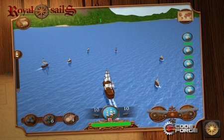 Royal Sails для андроид - игра для поклонников боевых действий на воде. Ты проследуешь в шестнадцатый век в Карибское море. На пороге противостояние между Испанией и Англией. Тебе предложено сыграть за капитана Королевского флота Англии. Просторы Восточной Индии еще не видели таких противостояний, которые тебе необходимо преодолеть. Для того чтобы установить руководство над Британской империи в данном регионе тебе нужно воровать и устранять судна противников, а еще принимать участие в грабеже городов с морских мест. Старайся преодолеть все двадцать заданий, оставаясь невредимым и здоровым и исполнить все указания твоей родины. Покажи, что ты стратег -- при приближении к судну, определи его вид -- торговый либо боевой -- и само собой примени собственные навыки для установления руководства, над судном которое встретилось.