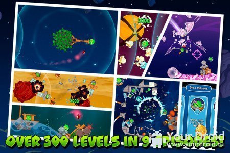 Владельцы android смартфонов, пожелавших поставить Angry Birds вселенная, посмотрите сначала гейм видео, окунувшись в сюжет с головой и познакомившись с персонажами в космических шлемах. Установив на андроид Angry Birds Space, вы окажитесь во вселенной с мириадами звезд.