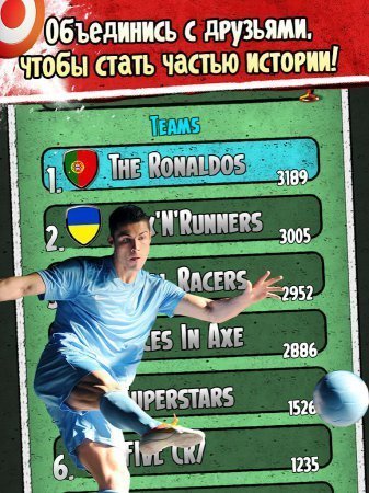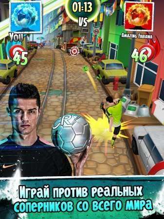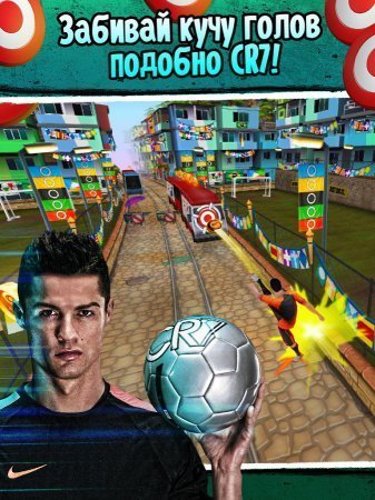 Cristiano Ronaldo: Kick'n'Run –– У тебя есть желание, стать на какое - то время самым лучшим футболистом на планете? Тогда попробуй себя в роли Кристино Рональдо, и отправляйся в путешествие с этим известным футболистом. Эта игра могла быть как обыкновенный ранер, хотя у нее имеется очень интересное исключение, это возможность удалять преграды при помощи футбольного мяча.