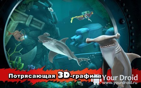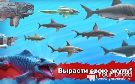 Управляйте жадной тигровой акулой в имитаторе hungry shark evolution для смартфонов, плавая в просторном подводном мире, заплывая на мелководье, поедая туристов. Поставьте Hungry Shark Evolution на андроид, погрузитесь на глубину 30 метров, найдите затонувший корабль, золотое сокровище. Если не боишься крови, скачай акулий симулятор android установщиком без платы, не регистрируясь.