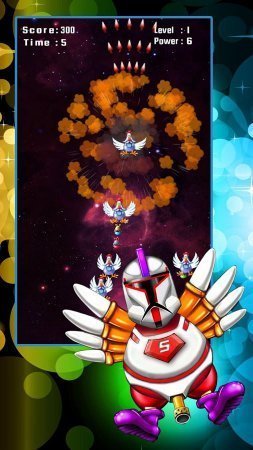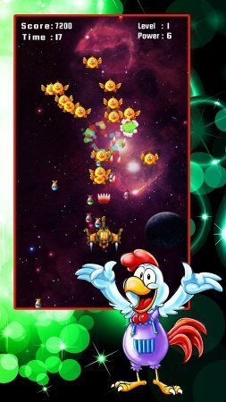Chicken Shooter: Space Defense – космическая игра, где вам предстоит сражаться не с инопланетянами, как это обычно бывает, а с войском кур, которое появилось не пойми откуда. В этой не традиционной схватке вам поможет военный корабль, вооружённый до зубов, в защите от нападения на Землю злобных куриц. Настроитесь на получения удовольствия от колоритной графики в сочетании с эффектной анимацией, от моря огня и выстрелов, от растерзывающих орудий и от тонны летающих перьев.