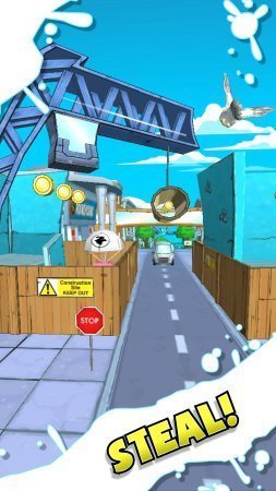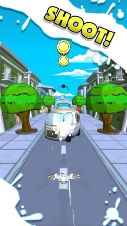 Grand Theft Seagull замечательный раннер в котором ты будешь руководить бешеной чайкой которая занимается воровством еды у людей. Руководи птицей и обходи все преграды у себя на дороге в облике низких полетов, пролетающих птиц, автомобилей и прочих преград, и сложностей. Пролети через отведенные кольца и не пропускай денежки на выбранном пути. Чем больше у тебя будет денежек, тем больше жизней будет у тебя и еще плюсовых бонусов. Игрушка сохраняет простое руководство, в котором необходим только один пальчик. Играй и получишь массу удовольствия и хорошего настроения от смешной чайки и воровства пищи для жизни. В игре нет русификации.