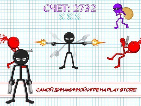 Gun Fu: Stickman 2 – очередная игрушка про всем знакомого Stickman. Создатели игрушки предлагают нам проверить собственную реакцию. Устрани всех, кто будет у тебя на дороге. И чем скорее ты это совершишь, тем больше у тебя возможности остаться в живых. Собери денежки и раскрой новенькие и мощные орудия. Изменяй облик данного персонажа. Преимущества – широкий перечень орудия и самого облика персонажа, способность играть с товарищами в режиме нынешнего времени, приятная графика которая сопровождается шикарным оформлением музыки, широкий перечень оружия, игрушка русифицирована.