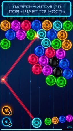 MB2: glowing neon bubbles – отменная игрушка на системе андроид, в которой ты будешь выстреливать цветными шариками. Данная игрушка представлена в неоновой графике продемонстрируй скорость совей реакции на практике и еще не забудь про внимательность. Выстреливай цветными шариками в группу, шаров которая размещена в верхней части дисплея и стремись набрать группу из трех и более шариков единого цвета, чтобы они в последствии взорвались, и тебе начислили важные очки. Твоей непосредственной цель будет очистить все приставленное поле от шариков и совершить это необходимо за самый малый промежуток ходов. Сыграй в игрушку и получи самое максимальное количество очков, соперничая с товарищами.