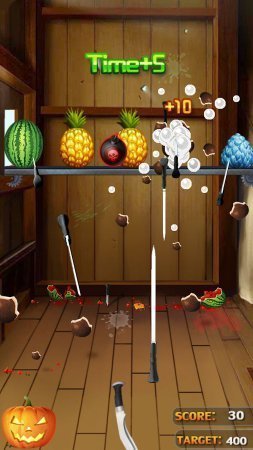 Fruit Smash – снова занимательная аркада, в ней тебе необходимо продемонстрировать всю личную ловкость и саму реакцию непосредственно для того чтобы нарезать самое большое количество подброшенных в вверх фруктиков которые сохранены в игре. Но будь предельно осторожен так как в воздух будут лететь так же и бомбы, и если ты к ним прикоснешься, то они тут же подорвутся. Бери нож, и ты в скорости не заметишь, как шустро ты с ним уже можешь владеть и как ловко все выходит. Руководство в игрушке легкое, и не происходит совершенно никакого отвращения, легко проводи пальчиком по дисплею в необходимых местах. В игрушке еще сохранены разнообразные бонусы попав на которые ты существенно упростишь себе игрушку.