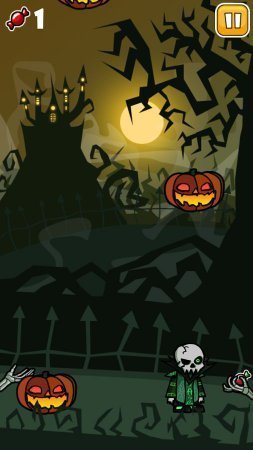 Halloween Dodge – занимательная игрушка на базе андроид, в которой ты будешь помогать центральному персонажу игрушки, перемещать конфетки с одного бока на другой. В предвкушении праздника как Хэллоуин данный персонаж одел страшный костюм и собрал достойное количество конфеток, и твоя цель помочь ему их донести. Передвигай персонажа по дисплею и смотри так как еще с неба падают тыквы. Руководство в игрушке предельно простое для того чтобы пройти с персонажем с одного места на другое дотронься к дисплею, а соответственно, чтобы остановить просто убери пальчик. С каждым последующим уровнем сложность игрушки будет подниматься, продержись как можно больше количества времени в данной игрушке и поставь личный рекорд. Игрушка не русифицирована.