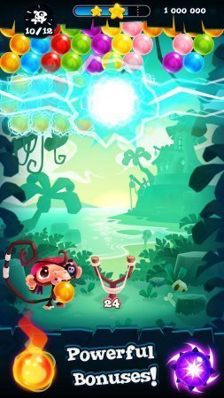 Monkey Pop - Bubble game – ты это великая обезьяна пират, да и судя по всему довольно бесстрашный, непосредственно по этой причине ы и проследовал спасать рыбок из западни, в которой они оказались. Тебе необходимо устранять шары единой окраски, чтобы лопнуть пузырь, и преодолеть уровень. Совершать ты это будешь благодаря простенькой рогатки, он если тебе покажется все это сложно, то тебе на помощь даётся один из мега приемчиков, которые точно могут перевернуть весь ход игрушки.
