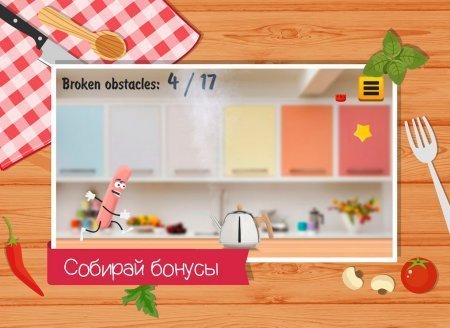 Sausage Run – помоги смелой сосиске справиться со всеми препятствиями и попасть к финишу. В данной динамичной игрушке ты будешь контролировать перемещающуюся сосиску, которая передвигается по кухне и уклоняется от столкновения с преградами. Каждый последующий уровень манит собственными удивительными миссиями к примеру, как – сбор всех звездочек, прохождение задания за малый срок времени и разлом всех препятствий. Руководство в игре предельно легкое и простое жми на правую частичку дисплея и вынуждай собственную сосиску скакать, жми на левую и персонаж пригнется. По ходу передвижения так же не пропускай соус, который поможет тебе в дальнейшем ломать все препятствия.