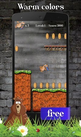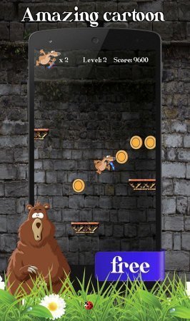 Clumsy Bear Run – эта игра представляет собой аркадное приключение. Медведь попал в подземелье и игрок должен его оттуда вывести. На дороге ему встретятся пропасти, туманы и прочие ловушки. Но медведь прекрасно катается на роликах и поэтому может перепрыгнуть любую пропасть. В игре несколько уровней и по мере прохождения можно собирать монетки и различные приятные бонусы. Игру отличает приятная танцевальная музыка, мультипликационная графика и несложное управление. Русский язык: нет