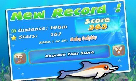 Dolphin - это одна из самых простых, но, тем не менее, чрезвычайно увлекательных аркадных игр для андроид устройства. Высокое исполнение графики, притягивает взгляд к мультипликационному сюжету. Основная задача – умелое управление шустрым дельфинчиком, который способен плавать на большой глубине в поиске игровых предметов. А также избегать опасных морских жителей, которыми изобилует дно. Игровой процесс очень легок и доступен даже ребенку, а приятное звуковое сопровождение позволит расслабиться и полностью погрузиться в яркую игру.