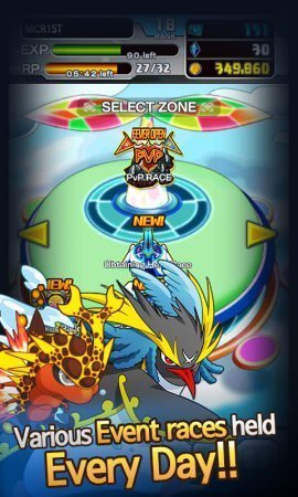В игре Monster Coin Racer (Global) - игроку будет нужно начала собрать команду очень милых монстров и участвовать с ними в гонке. Игрок сможет выбрать того, кого хочет, это зависит только от него. У каждого из монстров свои способности, которые нужно использовать в гонке. Разными будут и скорости машин и то, как они будут себя вести на дороге. За победы в соревнованиях можно получить золотые монет, в специальном автомате их можно потратить на усовершенствование своих монстров или на открытие новых. Это могут быть и феи, и быстрые драконы, и многие другие персонажи. Можно соревноваться с другими игроками и получать призы. Русский язык: нет