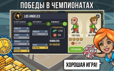 Basketball Battle – не просто андроид игра, это настоящее пособие по баскетболу. Вы в полной мере ощутите себя тренером лучшей баскетбольной команды и сможете принимать участие в разных соревнованиях. Если вы действительно хороший наставник, то победа на национальном первенстве в ваших руках. Простая игровая механика позволяет очень быстро разобраться в игровом процессе. Но не думайте, что все так просто, чем больше побед одержит команда, тем более сложные уровни вам откроются, а уж на них придется потрудиться. Русский язык: в наличии.