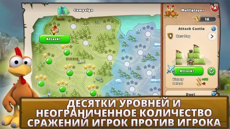 CRAZY CHICKEN strikes back - как вы уже догадались это игра является продолжением знаменитой серии CRAZY CHICKEN. Поклонники серии будут приятно удивлены, ведь в этот раз разработчики преподнесли им подарок и создали совершенно новый продукт. Имеют присутствие элементы стратегии и аркады, такое можно встретить в игре Angry Birds. Сюжет игры заключается в том, что Вам необходимо уничтожить строения врага используя магию и метательное оружие, но не забывайте отбивать вражеские нападения на свою цитадель. Замок можно улучшить, а также строить по своему усмотрению. Тут важна тактика защиты и нападения, насколько хорошо она будет сбалансирована, зависит исход игры. Русская версия игры имеется.