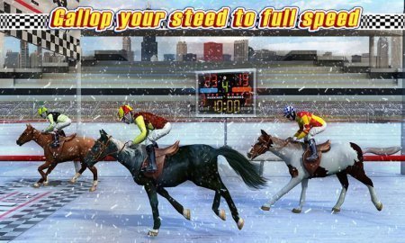 Horse Derby Quest 2016 – игра симулятор по конной езде. Вы можете участвовать в скачках и зарабатывать призы. Вы имеете одного четвероногого питомца, которого нужно вырастить чемпионом. Делая его лучше, отслеживая показатели и улучшая характеристики, принимать участие в турнирах. Игра обладает хорошей графикой и многообразием этапов, которые ставят определенную цель перед игроком. Стремитесь выполнять задания на высший балл, за что получите больше денежных средств. Русской версии игры нет. Доступ к Интернету не требуется.