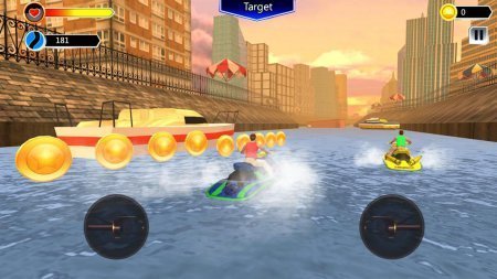 Jet Ski Joyride – Игра с шикарной динамикой. А заключается она - в езде на водном мотоцикле одного очень озорного мальчика. Действие происходит на Карибах. Вам предстоит собирать монетки и бонусные элементы, для улучшения своего рейтинга. Сложность этой игры заключается в том, что можно разбиться или врезаться в препятствия, встречающиеся на пути. Каждый уровень сложнее и быстрее предыдущего. Русской версии игры нет. Возможности переноса на внешнюю карту нет. Поехали кататься...