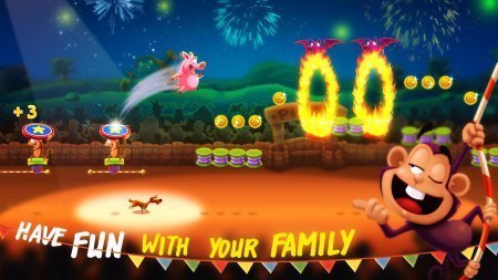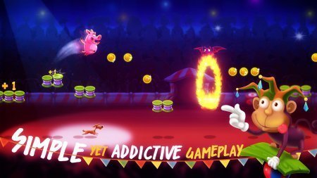 Piggy Show – занятная игрушка которая выступает таким себе миксом из джампера и платформер аркадного типа. Центральным персонажем данного проекта стал занимательный и миленький поросенок, который жаждет стать звездой цирковой программы и не просто программы, а самой что ни есть акробатической. Механика игрушки предельно простенькая, руководи героем с помощью тапа, твоя цель помогать ему проскакать по всем платформам при этом уклоняясь от преград и не пропускай призы. Сама по себе игровая механика данной игры само собой не новая, но вот если говорить об исполнении, то она содержит в себе неимоверную красивую графику, отменное сопровождение звуком, хоть и легкий то все-таки сюжет, легкое руководство, занимательных персонажей сполна компенсирует все минусы игрушки. Игрушка не русифицирована.