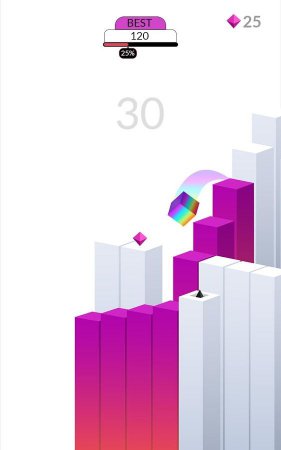 Qubely – простенькая и занимательная игрушка на реакцию, в которой тебе необходимо руководить перемещением кубика. Задача игрушки предельно проста, кубик катится вверх по представленной башни, а тебе необходимо его координировать в необходимом направлении, чтобы он мог заскочить на новый блок. Кубик не способен скакать сквозь через один блок, поэтому быть предельно внимателен. Так же те строения, по которым он уже промчал, будут рассыпаны, так что торопись. Ты еще способен копить кристаллы, за которые возможно будет раскрывать новенькие кубики. Игрушка не русифицирована.