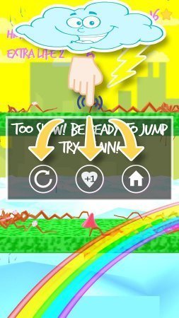 Sweet Jump – занимательная игрушка на платформе андроид, в которой ты будешь помогать разнообразным сладостям уйти от наступающего наводнения. Наставшая гроза несет угрозу для всего широкого мира, может отправить его под воду и только мороженное, пончик и прочие сладости приняли решение уйти от потока водички. Скачи, как только можно выше по красивым уровням и уклонись от наводнения. Продемонстрируй на практике шустрость своих пальцев и отменную реакцию, беспрерывно соверши массу скачков. Высота воды постоянно поднимается и тебе необходимо очень сильно постараться, чтобы не намочится. По дороге не пропускай золотые звездочки и получи таким образом доступ к новеньким героям игрушки. Игрушка принесет радость пользователям красивой графикой, широким перечнем героев и легким руководством. Игрушка не русифицирована.