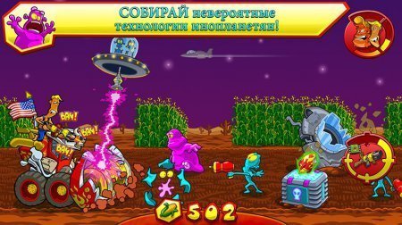 Farm Invasion – позволяет вжиться в роль обычного американского фермера. В хозяйстве множество бытовых хлопот, нужно следить, чтобы всё было в порядке, и урожай рос хорошо. Внезапная напасть, в виде инопланетных охотников за кукурузой, оборвёт идиллию. Наглые инопланетяне совершают набеги на поле без спроса. Нужно восстановить справедливость и прогнать воришек, помогут в этом верный комбайн и безотказный дробовик. И урожай поспел, его пора собирать. Главное не натыкаться на преграды и строения. К самим наглецам тоже не нужно подбираться близко, некоторые гибнут и взрываются, этим самым нанося вред технике. А вот бонусы весьма полезны, они позволят заполучить более мощное вооружение или временную защиту от ранений. К тому же, игра на русском и работает без доступа в интернет.