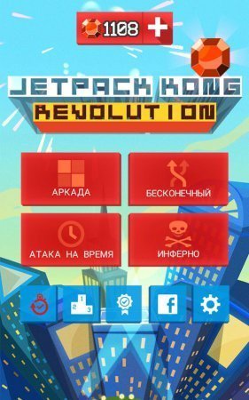Jetpack Kong Revolution – совершенно бешенная обезьянка с реактивным ранцем которая постоянно летит вверх и уклоняющаяся от разносторонних преград, принесет эмоции массе пользователей мобильников. В самом начале тебе нужно удрать с представленного зоопарка, а только потом продумать коварный план о мировом господстве. Руководство легкое в пару кнопок. Одна направляет вправо, а вторая движет влево. Уклоняйся от преград и разносторонних опасностей, не пропускай денежки, самоцветы и прочие полезные предметы. В игрушке приготовлено четыре игровые режима. Каждый определит для себя именно тот который ему по душе. Дается мировая лидерская табличка с данными. Игрушка не русифицирована.