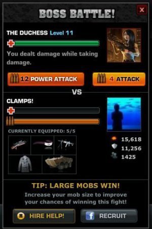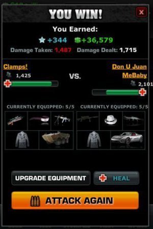 Mob Wars – игра для устройств с поддержкой андроид. Вы будете погружены в мир преступлений, где придется воевать с настоящими игроками, пробивая себе дорогу на вершину гангстерской жизни. Вы можете делать различные стычки и драки, прибегать к помощи киллеров или самостоятельно истреблять потенциальных противников. В игре в наличии 17 разных территорий, сильные игровые боссы, множество вооружения - от обычного до уникального, столько же машин и техники, а также бонусы и форум. Кроме того, доступно 160 интересных наград. Русский язык: неизвестно. Установка на внешнюю SD карту: не поддерживается. Интернет: нужен.