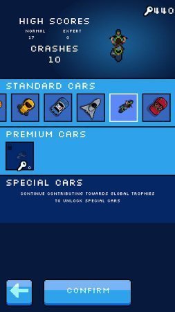 Chrome Death – возьми под личный контроль смелого гонщика и проведи его по улочкам городка стремясь уйти от преследования. В данных гонках с видом сверху ты будешь руководить шустрым автомобилем, который перемещается по улочкам ночного городка, стремясь уйти от преследования и уклонится от столкновения с препятствиями. Игрушка порадует тебя простеньким руководством, где тебе нужно вовремя жать на дисплей собственного устройства для того чтобы машина произвела поворот. Уходите от столкновения с прочими автомобилями, ограждениями и стенами помещений. Исполняй разносторонние миссии этой игрушки и покупайте новенькие машины. Установите собственный рекорд по времени прохождения дороги и соперничай с товарищами. Игрушка не русифицирована.