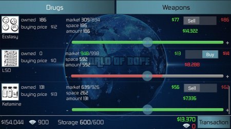 Наркотики – вещества которые с самого начала еще древних времен были совершенно неотъемлемой частичкой народной культуры и легенде. С того момента как наркотики перевели так сказать в ранг не законных вещей возникла масса народа, зарабатывающих на их реализации неимоверные деньги. Синдикаты, нарко-бароны, картели, кокаиновые цари все эти формы выражений, связывающиеся с большущими доходами, но и с очень высоким уровнем риска. Соперничающие кланы, контроль над наркотиками, службы федерального типа — это так же не мая часть наркотической продажи. World of Dope – широкая стратегия с частичками аркады, в которой ты можешь попробовать собственные силы в таком не простом бизнесе. Причем типаж продажи наркотиков в проекте исполнен достаточно достоверно, свыше сотни городков, а еще свыше сорока типов наркотических средств, орудие, машины, даже самолеты, широкая конкуренция и полиция все как должно быть. Игрушка не русифицирована.