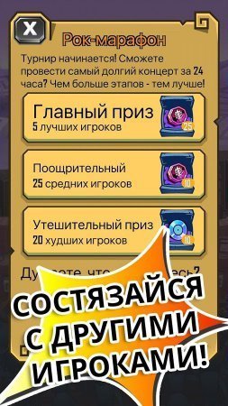 Rock Gods Tap Tour – занимательный кликер создателям которого вышла одна из больших компаний Ubisoft Entertainment. В данный раз разработчики проекта приняли решение обратить собственное внимание на рокерскую тему, при этом абсолютно с нового боку взглянув на механику проекта. Как уже было сказано во главе проекта Rock Gods Tap Tour взят геймплей который взят в тематике кликкеров, а основной твоей задачей само собой выступит продвижение личной рок-команды. Но это еще совершенно не все. В разрез с прочими представителями такого жанра, представленная игрушка получит и экшен частичку, тебе нужно будет противостоять отчаянным рок-богам, которые так и жаждут тебе подпортить существование. При всем при этом каждая завоеванная победа будет тебя приближать к желаемому музыкальному триумфу. Проект целиком русифицирован так что ты полностью можешь насладиться проектом от начала и до конца.