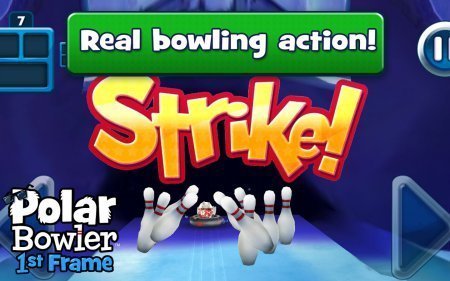 Polar Bowler 1st Frame - отправляемся в Арктику, с очень необычным и веселым заданием – играть в боулинг! Вам придется перевоплотиться в медведя и заняться сбиванием кегль вместо шара, с помощью надувного круга. К особенностям относятся – восхитительный геймплей и отменная графика. Физика на высоте! Русский язык: нет. SD карта: нет.