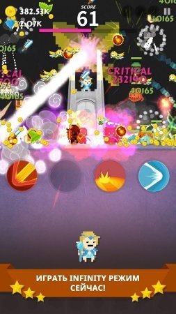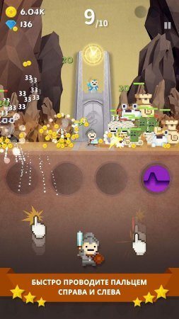 Tap Quest: Gate Keeper – в этой игре - кликере вы проявите себя как доблестный защитник прекрасной принцессы. Вам нужно охранять её башню и не дать проникнуть туда коварным чудовищам. Атакуя с правой или с левой стороны, вам придется убивать врагов юной леди. Нельзя позволить им открыть ворота, иначе злобный дракон окажется на свободе. Всё достаточно просто, но с каждым разом сила чудовищ будет расти, а их навыки будут становится более совершенными. Игра порадует вас всевозможными бонусами (специальной одеждой, оружием и так далее) и наличием ваших собственных способностей. После каждого удачного сражения вы сможете рассчитывать на их улучшение. Позволяется выбрать и другой вариант – взять для героя новых помощников и получить дополнительные бонусы. Русский язык: нет. Интернет: нет.