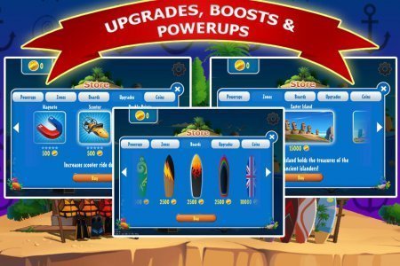 Banzai Surfer – неимоверные приключения парнишки серфингиста на дисплее устройства на базе андроид. Скачи, ныряй, греби и непременно ускорься для преодоления преград и накопления поощрения. Преимущества – интуитивно ясный игровой интерфейс, манящая графика, разносторонние досок для серфинга такие же и локации в проекте. Достойная озвучка. Проект не оставил русификации.