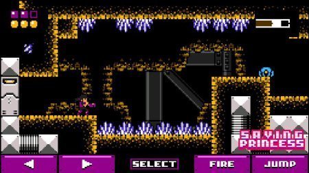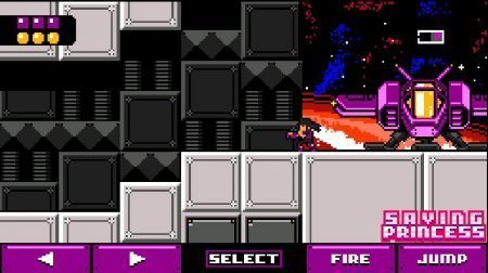 Возможно между владельцами андроид, отыщется не мало тех, кто еще помнит приставки с начала еще девяностых годов и те проекты которые по сути оставили главные рамки игростроя. Одним из самого известного жанра того замечательно времени был непосредственно платформер, который чаще всего разбавленный широкой половиной экшена. Такого рода направление в индустрии игр продвигается в развитии как на компьютеры, также и на мобильники. Saving Princess – занятный классический экшен – платформер в пиксельном представлении, все события в нем начинаются в отдаленном космосе, на такой себе космической станции. Линия сюжета предельно проста, девушка оказалась в беде, а ты как отважный рыцарь принялся ее спасать. На дороге тебя ожидает не малое количество совершенно безжалостных роботов убийц, но и ты не пасешь задних у тебя хорошее вооружение и подготовка. А еще сама система развития и апгрейда даст возможность стать еще более мощным.