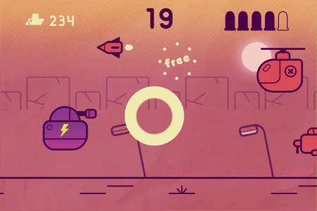 Bouncing Tank (shooter) – возьми под личный контроль скачущий танк и проведи его по многочисленным уровням. В данном проекте ты будешь руководить непростым танком, который производит скачки, отскакивая как мячик от земли. Твоя цель в необходимый момент жат на дисплей для того чтобы произвести выстрел и устранить двигающееся к тебе препятствие в облике самолета, вертолета и даже ракеты. Стремись пройти как можно дальше в данном проекте и не встретиться с преградой. Каждый не верный выстрел приведет тебя к потере драгоценных припасов, которые и так не сильно то и много. Поставь собственный рекорд в данном проекте и интересно проведи досуг.