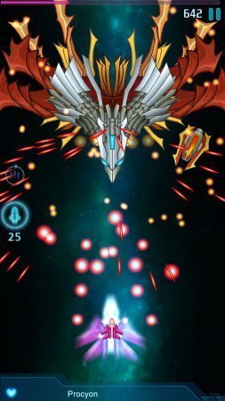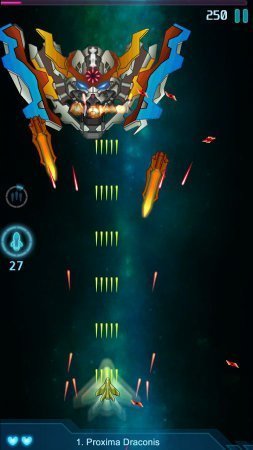 Galaxy Falcon – хорошенькая леталка на базе андроид, от создателя восточных кровей. Пристань к группке Космических Соколов определенному отряду, которые сражается за защиту Земли против нападок Прокси Центавра. Твоя цель разгромить броню инопланетян и устранить их главаря черного Акма, перед тем как он причинит серьезный удар по всей планете. Кроме подбора повышения мощности орудия, ты способен поднять уровень параметров собственного корабля.