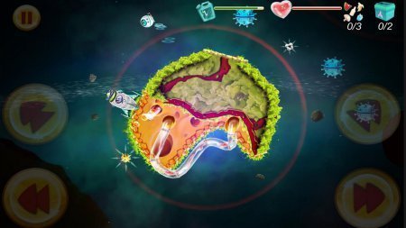 Axy Galaxy – фантастическая игрушка на базе андроид, где именно ты будешь помогать инопланетному существу, собрать все нужные детальки и отремонтировать представленный корабль. Космический корабль данного персонажа попал в аварию и теперь ему нужно двигаться по разносторонним планетам и даже астероидам, подбирая необходимые детальки. Поворачивай планету по собственной оси и кати по ней шарообразного монстрика, преодолевая при этом все представленные преграды и ловушки и не пропускай необходимые детальки. Каждая планета и астероид сохраняет индивидуальную форму, и разносторонние задания которые ждут твоего посещения. Помоги персонажу справиться со всеми сложностями и отремонтировать такой нужный ему корабль.