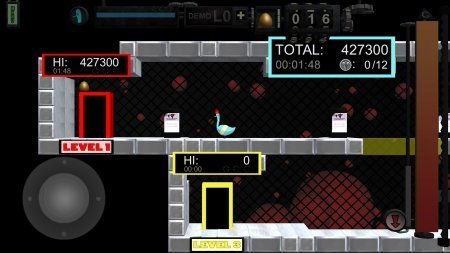 Gravity Goose – помоги персонажу Гари разыскать собственные потерянные крылья в данном занимательном платформере на базе андроид. Данный гусь посеял собственные крылышки, но взамен он получил определенную перчатку, которая изменяет гравитацию и за этот счет она способна производить скачки и справляться с преградами. Перемещайся по многочисленным ступеням игрушки и перескакивай сквозь все препятствия, сложности, пропасти и прочие ловушки. Стремись найти утраченные крылья и поменяй силу гравитации, чтобы уйти от потери жизнедеятельности гуся. Игрушка принесет эмоции простеньким и ясным руководством, широким перечнем уровней, а еще рамками обучения на примере парочки фрагментов проекта.