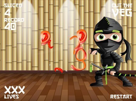 Veg ninja – нарежь фрукты и овощи на небольшие кусочки, применяя для этого собственный меч. Подвижная игрушка на базе андроид, где тебе важно превратить собственный экран телефона либо планшета в доску непосредственно для нарезания фруктиков, а еще овощей. Возьми собственный меч и единым верным движением нарезай на небольшие кусочки вкусные плоды. Соверши неимоверный фейерверк из кубиков фруктов и овощей и избегайте при этом разносторонние ловушки в облике бомб. Игрушка понравиться совершенно всем возрастам и полюбится совершенно всем. Играйте в данную игрушку в любое удобное для тебя время и насладись шикарной графикой и достойной музыкой в сопровождении.
