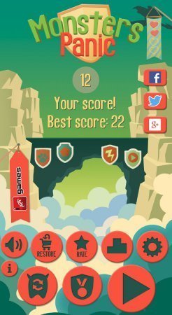 Monsters Panic – занимательная игрушка на базе андроид, которая испытает твои способности и шустрость реакции. Задача игрушки очень простенькая, тебе важно в необходимый момент произвести скачек для того чтобы не маленький монстр перескочил сквозь маленького. Перемещайся по мосту и скачи сквозь монстров, ты можешь сказать, что может быть легче, но с каждым преодоленным уровнем сложности игрушки будет повышаться и тебе все сложнее будет подстраиваться под темп. Проверь собственные силы и нервы непосредственно на прочность, руководя не малым моснтриком и насладись при этом шикарной графикой и достойным сопровождением музыки. Играй и тренируй собственную реакцию. Играй и непосредственно тренируй личную реакцию.