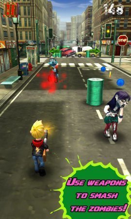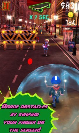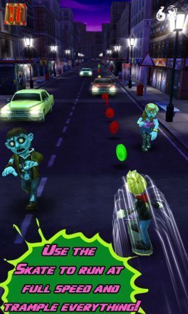 Zombies After Me – твой городом захватили злобные зомби и твоя основная задача не попасть на обед данным противным мертвецам. Преодолей представленную дорогу сквозь массу бродячих монстров с дробовиком и бензопилой. Примени скейтборд и твои спрятанные акробатические способности, чтобы преодолеть все преграды и преодолеть взрывоопасные не малые бочки, которые размещены по всей окрестности, по которой тебе и необходимо будет пройтись. Копите денежки, для того чтобы приобрести несколько необходимых частичек и принять поощрения в представленном виртуальном магазинчике.
