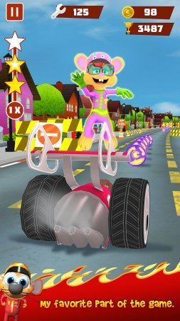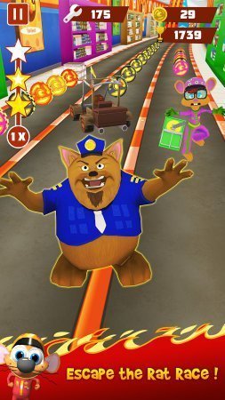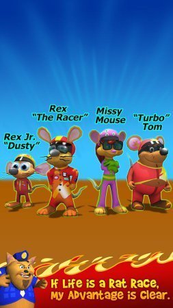 Rat Race: The Legend of Rex – фантастические гонки на платформе андроид, где ты будешь помогать небольшой крысе сбежать от котика охранника. Данный герой оказался в магазине для того чтобы украсть и з него кусок сырка, но выяснилось, что там при охране работает не маленький кот, помоги крысе удрать от кота, применив для этой цели неимоверный автомобиль. Руководи движение машины, маневрируя непосредственно по не простым дорожкам магазина, и не воткнись в преграды на дороге. Тренируй собственные рефлексы и навыки водителя и не допусти того чтобы кот тебя словил. Не пропусти неимоверные гонки и в течении игрового процесса раскрывай для себя новеньких героев, которые имеют неимоверные навыки. Копи бонусы и получайте доступ к новеньким машинкам.