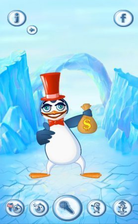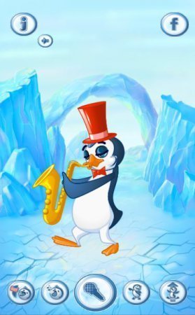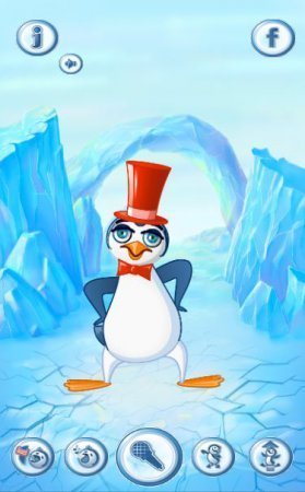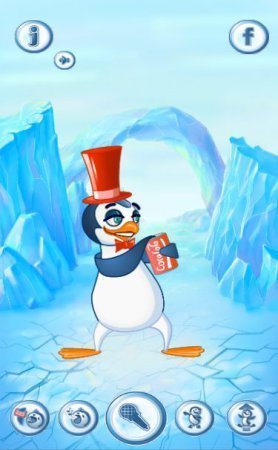 My Happy Penguin – веселенькая игрушка благодаря ней ты получишь в собственном телефоне виртуального товарища пингвинчика. Твой товарищ исполняет разносторонние команды, которые ты ему укажешь. Жми на определенную команду микрофона удержи ее и проговаривай любую команду, которая возможна в игровом описании. После чего герой исполнить шесть разносторонних указаний таких как – танцы, скакать, петь песенки либо даже играть, до встречи, привет и пить вкуснейшую кока-колу. Если ваш персонаж будет размещен в хорошем расположении духа, то он будет исполнять все команды совершенно бесплатно. Игрушка сохраняет шикарной графикой и разнотипными звуками, и песенками.