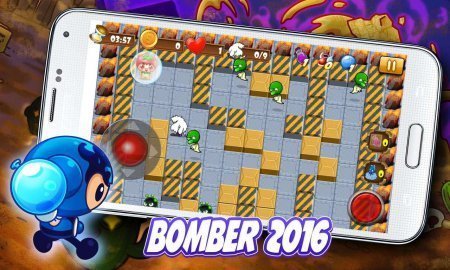 Bomber 2016 – интересная аркада на системе андроид, где тебе важно руководить персонажем, который подрывает бомбы. В проекте ты окажешься на поле, которое содержит в себе разноплановые лабиринты, там тебя подстерегают противники, твоей целью будет размещать бомбы таким образом, чтобы устранять всех противников на уровне. Разработай комбо взрывы размещая подряд парочку бомб. Подрывай противников и преграды на собственной дороге, раскрывая для себя дорогу к выходу, но будь очень осмотрителен, для того чтобы не подорвать собственного персонажа так как превратиться в приведение. Укройся от взрывов за кирпичными стенками и покупай для собственного персонажа разноплановые костюмы и усиления.