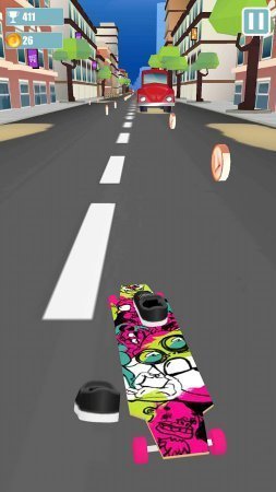 Skate Surf – интересный раннер на системе андроид, где тебе необходимо взять под личный контроль скейтборд. В данном проекте ты будешь руководить скейтбордом, применяя для этого собственных пару пальцев. До тех пор, пока твои пальчики на доске ты способен маневрировать в постоянном потоке автомобилей и преград, для произведения скачка убери пальчики с поля. Проложи для себя дорогу по подвижным трассам и перескакивай преграды, а еще лужи, а еще помни что тубе будут нужны золотые денежки, которые ты можешь потратить на покупку новеньких модных досок. Играй в данный проект и проверь на практике собственную достойную реакцию и собранность.