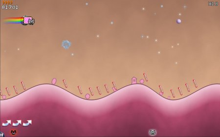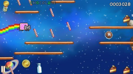 Nyan Cat Lost in Space на андроид – приключенческий симулятор уклона в аркаду, вселяющий полезные, полупрофессиональные навыки управления крылатой кошкой. Управляя персонажем, согласно сюжетной задумке создателей, вы осуществляете сбор конфет, пирожных, фруктовых и восточных сладостей. За каждое выполненное задание, пройденную миссию или достигнутый результат кот получает денежное вознаграждение, приобретает опыт, навыки стратегического мышления. Попробуйте скачать бесплатно аркадную викторину. Уверяю, вы не оторвете взгляд от экрана смартфона или 20-дюймового дисплея компактного планшетного компьютера.