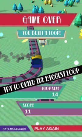 Railblazer – веселенькая игрушка, в которой тебе нужно строить железную дорогу для перемещающегося поезда. Данный проект направлен на ловкость и мышление где тебе нужно как можно скорее выстраивать железную дорогу, применяя для этой цели пять разнообразных плиток, каждая из них индивидуальна и направит данный поезд в разные направления. Сложность игры заключается в том, что того чтобы выстроить дорогу тебе нужно уходить от всех преград и растущие везде деревья. С каждым дальнейшим уровнем перечень преград будет становиться только больше, а с ними и сама скорость перемещения. Установите собственный рекорд в данном проекте, соперничая с очень сильными пользователями.