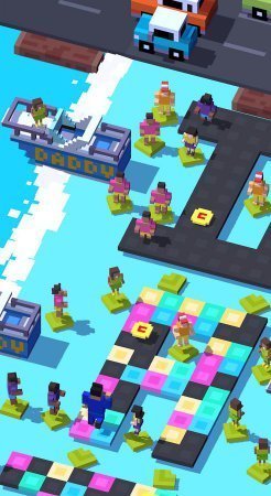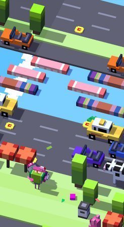 Приняв решение – скачать игру Crossy Road на планшетный компьютер либо пятидюймовый смартфон, вы должны будете наладить управление персонажем с помощью сенсорного дисплея устройства. Первоочередная цель покажется простой и примитивной. Серьезные физические трудности будут ждать вас после успешного прохождения трёх этапов, компилирующих заторами, пробками, завязками 10-20 машин. Справившись с поставленной разработчиками приоритетной задачей, вы попадаете в густонаселённый транспортными единицами урбанизированный район мегаполиса из пиксельной графики. Быстрый проход к финишу обеспечит радикальный настрой, полное исключение раздражающих факторов, хорошее, устойчивое к стрессам психоэмоциональное состояние.