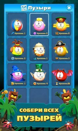 Прыжки пузырей – игрушка в которой именно ты непосредственно будешь помогать пузырям удрать от злобного Тикиса, которых их украл. Это совершенно безостановочная аркада, в котором тебе нужно будет скакать, как только можно выше по предложенным деревьям, для того чтобы помочь пузырькам возвратиться домой. Преодолей противного злодея и освободи дорогих товарищей, а еще у тебя будет шанс раскрыть новеньких занимательных героев. По мере игрушки копите поощрения и принимай длительные ускорения и соперничай с собственными товарищами на скорость. Преимущества – свыше сотни уровней, простое руководство с применением наклонов устройства. Неимоверные бонусы, лидерская табличка в сети Facebook. Разносторонние пузырьки, достойная графика HD.