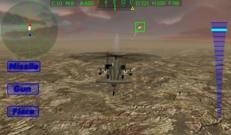 Apache Chopper Pilot 3D HD – интересный аркадный симулятор н абазе андроид, исполненный в 3D HD графике по руководству и ведению сражения на шикарном вертолете. Тебя ожидает интуитивное руководство вертолетом и подвижные сражения по устранению объектов в небе и на территории земли. Преимущества – целое 3D в представлении OpenGL, физика полета на реалистичном уровне. Массивный дым и взрывы. Разноплановые форматы ландшафта. Интуитивные средства борьбы. Игрушка не сохраняет русификации.